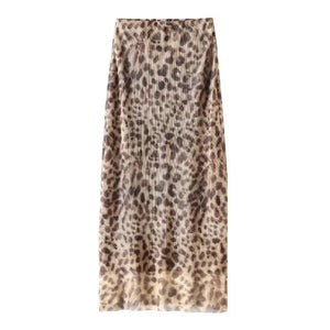 ASDS Leopard Print Tulle Skirt Woman Vintage High Waist Long Skirts For Women Summer Mesh Midi Skirt Elegant Women's Skirts