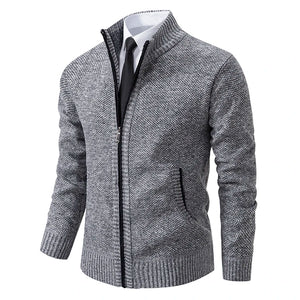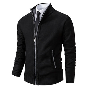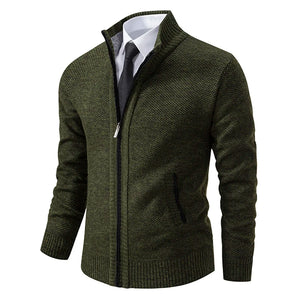 Autumn And Winter New Jersey Men's Casual Sports Coat Solid Color Stand Collar Wweater Grab Fleece Warm Zipper Cardigan