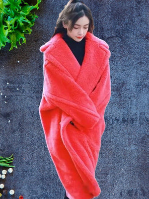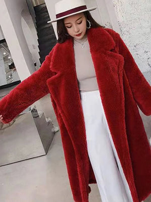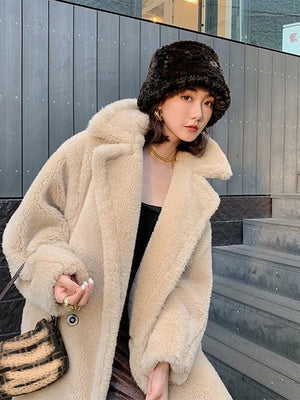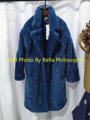 Bella Philosophy Women Winter Faux Fur Warm Long Coat Long Sleeve Female Thick Teddy Bear Coat Casual Loose Oversize Outwears