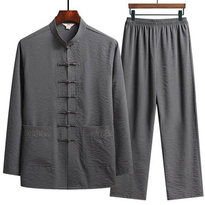 Home Chinese Traditional Clothing Set Man Fall Linen Buckle Kung Fu Shirt Oriental Retro Top Pants Tai Chi Breathable Uniforms Hanfu