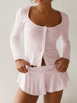 Cute Fairy Pajamas Set Long Sleeve Button Down Top Ruffle Shorts 2 Piece Lounge Sets Y2k Sleepwear Women Short Dress