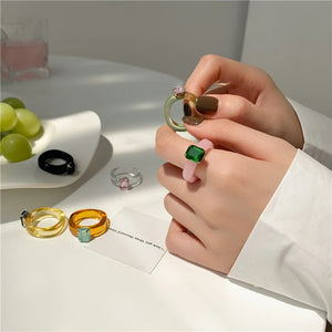 Design Transparent Acrylic Gem Resin Candy Color Jelly Ring