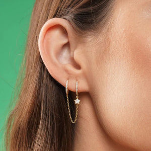 Double Ear Ring Chain Five-pointed Star Jeweled Earrings