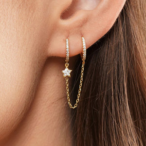 Home Double Ear Ring Chain Five-pointed Star Jeweled Earrings