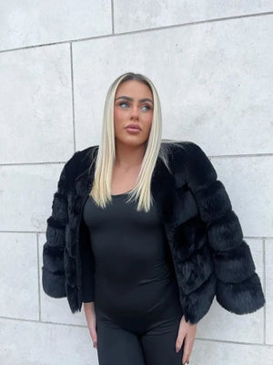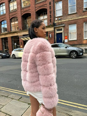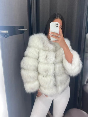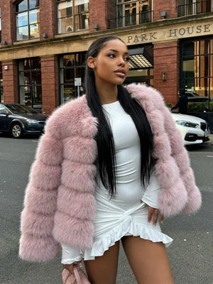Elegant Faux Mink Fur Short Coat Women O-neck Crop Long Sleeve Artificial Fox Fluffy Lady Jacket 2024 Winter Female Outwears