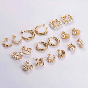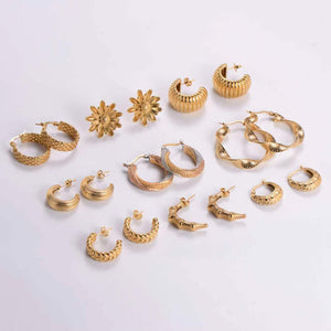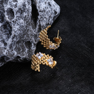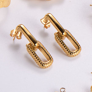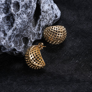 Elegant Water Drop Round Half Circle Crescent Hollow Stainless Steel Earrings