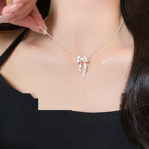 Escape Princess Simplicity Silver Bow Necklace Ins Style
