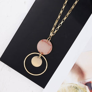 Home Fashion Designer Model Resin Circle Pendant Long Elegant Necklace