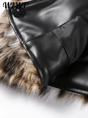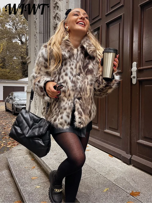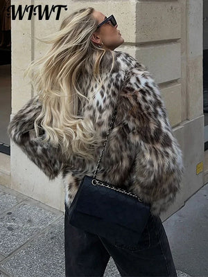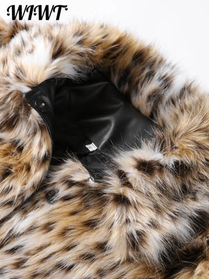 Fashion Leopard Faux Fur Coat Women Casual Lapel Single Breasted Plush Warm Overcoat 2024 Winter New Lady Cozy Print Streetwear