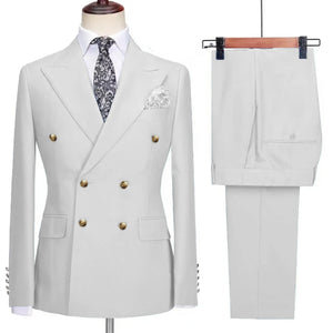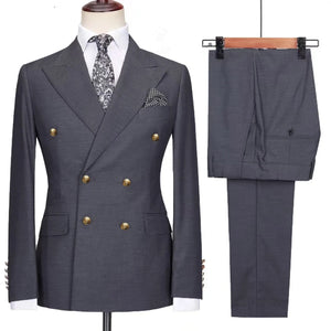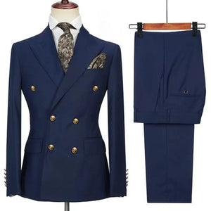 Home Fashion New Men's Leisure Boutique Business Banquet Solid Color Wedding Double Breasted Slim Fit Suit Blazers Jacket Pants