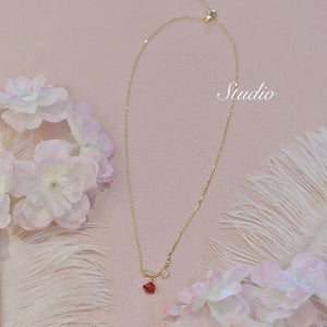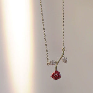 French Retro Rose Wine Red Exquisite Refined Grace Zircon Necklace For Women