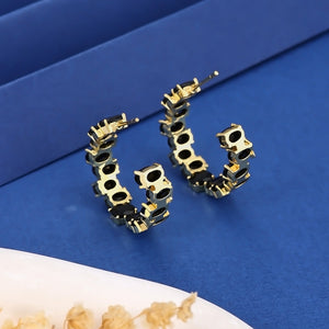 Geometric Inlaid Zircon C- Shaped Ear Ring Women