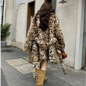 High quality Winter Animal Leopard Faux Fur Extra Long Coat Full Sleeve Loose Warm Shaggy Jacket Loose Outerwear