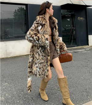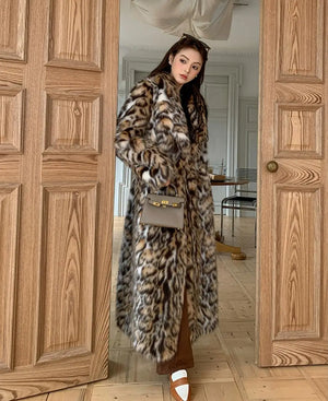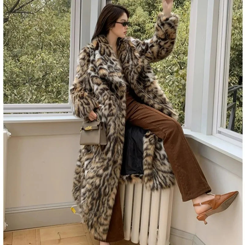 Home High quality Winter Animal Leopard Faux Fur Extra Long Coat Full Sleeve Loose Warm Shaggy Jacket Loose Outerwear