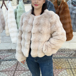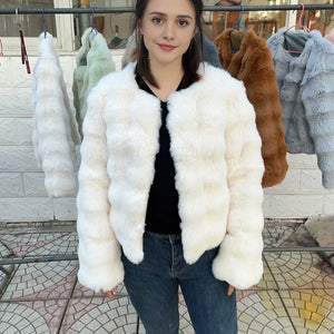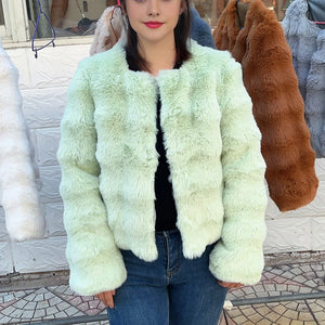 Short Imitation Fur Plush Collarless Top Short Top 2024 Autumn and Winter Warm and Trend