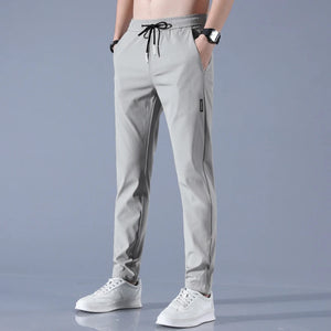 Ice Silk Men's Pants Summer New Black Gray Thin Business Casual Pants Outdoor Elastic Breathable Straight Leg Sweatpants