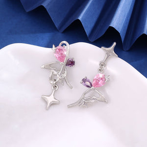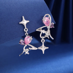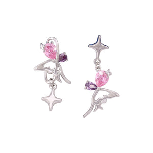 Irregular Asymmetric Four Eight-pointed Stars Stud Earrings