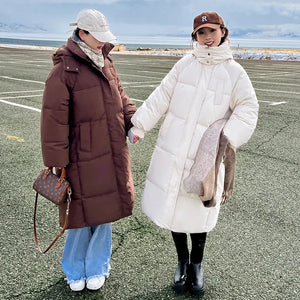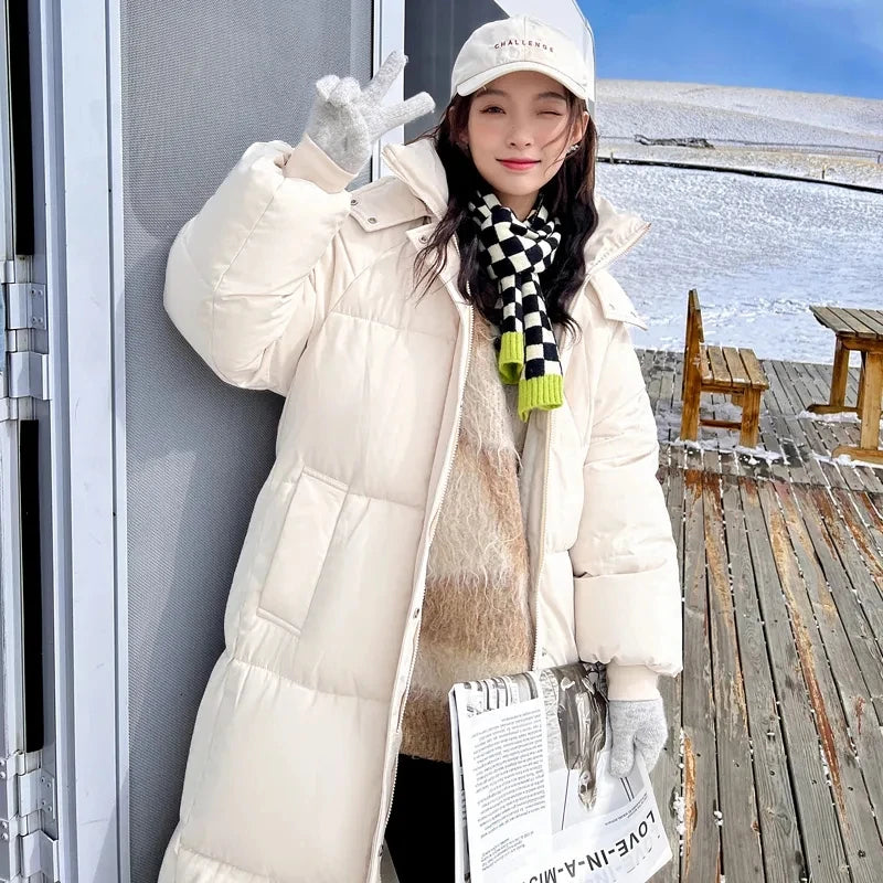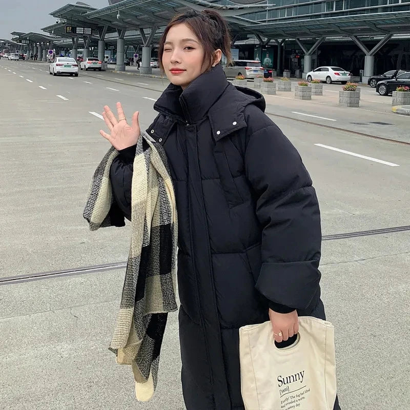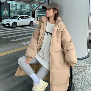 Long Down Cotton Jacket Women's Warm Overcoat Korean Hooded Loose Casual Snow Wear Coat Female Windproof Parkas Outwear