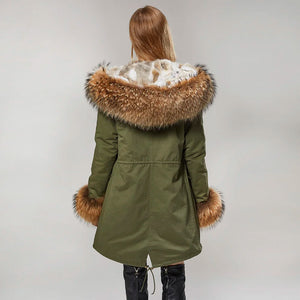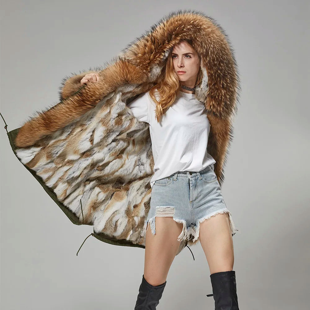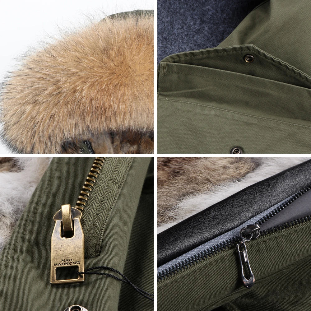 Maomaokong Winter Women Real Fur Coat Long Rabbit Fur Lining hooded Parka Large Raccoon Fur Collar Thick Warm Jacket