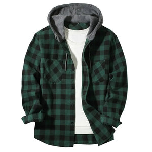 Men's Shirts Classic Plaid Casual Button Down Hooded Long Sleeved Double Pockets Shirt Hoodie Flannel Jacket Spring Autumn Tops
