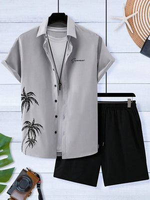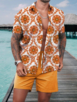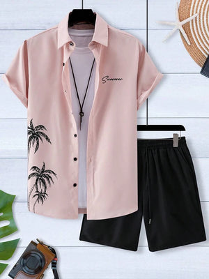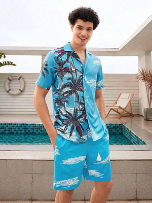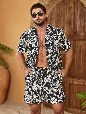 Men's Short-sleeved Shirt And Beach Shorts Set Hawaiian Vacation Men's Casual Shirt Summer Stylish And Comfortable Men's Shorts