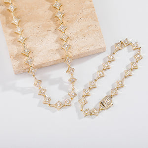 Micro Inlaid Zircon Double Hanging Four-angle Star Spring Fastener Bracelet