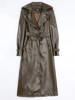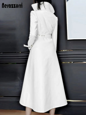 Nerazzurri Spring Runway White Long Leather Trench Coat for Women Long Sleeve Elegant Luxury fashion Womens Coats