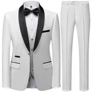 New Costume Clothing Luxury Party Stage Men's Suit Groomsmen Regular Fit Tuxedo 3 Peice Set Jacket+Trousers+Vest Blazers Pants