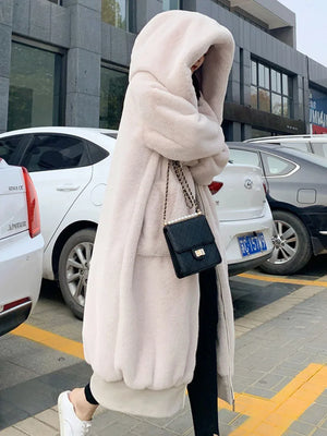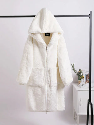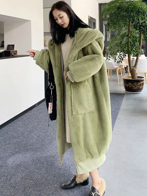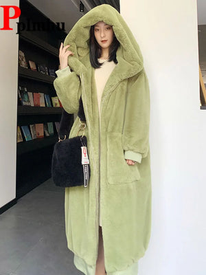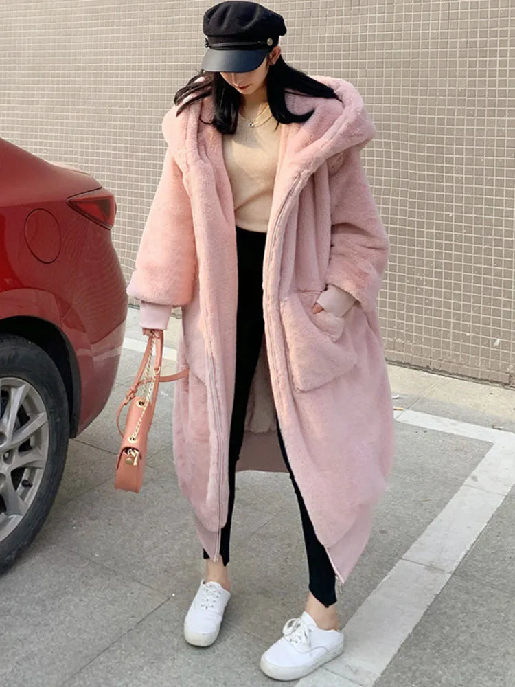 New Hooded Long Warm Thickened Jacket Trend Faux Rabbit Fur Coat Winter Casual Plush Chaqueta High-quality Luxury Outerwears Top