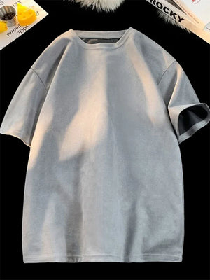 New Retro Suede T-shirt Men Women Anti-wrinkle Loose Crew Neck Casual TShirts Summer Short Sleeve Fashion High Street T Shirt