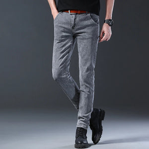New style jeans, men's slim fit, Korean style comfortable straight leg elastic gray mid waist pants, men's casual denim pants
