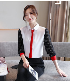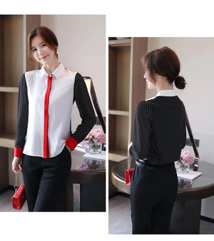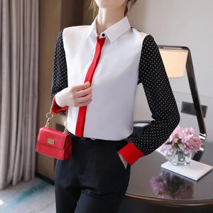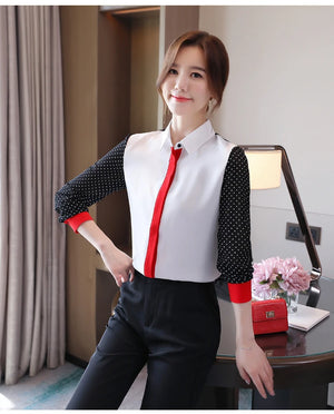 Office Lady Loose Fashion Lace Chiffon Shirts Spring New Striped Patchwork Simple Casual Blouse Women Clothing