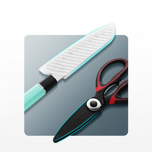 Included kitchenware: spatula / pot spoon / clip / scissors / kitchen knife / cutting board / rice spoon