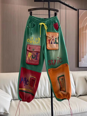 Painted Jeans Female Autumn New Personalized Elastic Waist Washed Ankle Banded Working Denim Pants Trendy
