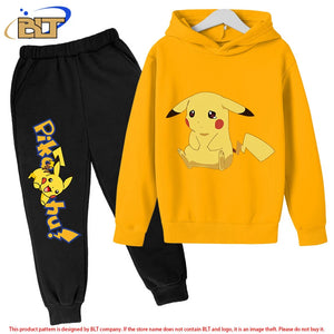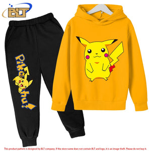 Home Pikachu children's fleece hoodie set yellow sports sweatshirt pants two-piece suit for boys and girls