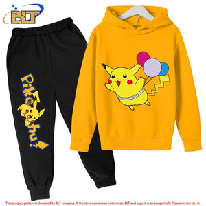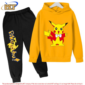 Pikachu children's fleece hoodie set yellow sports sweatshirt pants two-piece suit for boys and girls