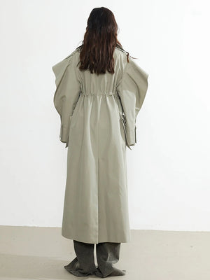 PlusizeShe Spring Autumn Long Elegant Chic Trench Coat for Women with Drawstring Waist Double Breasted Luxury Designer Clothes