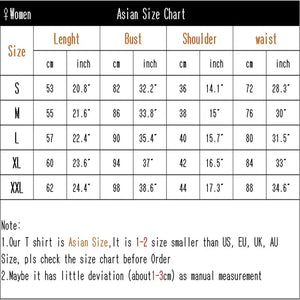 Our T-shirts are Asian Size , it is about 1-2 sizes smaller than US, EU, UK, AU Size,please check the size chart before order.