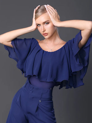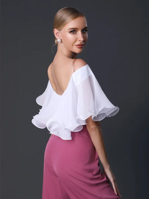 Ruffled Floating Sleeves Modern Dancing Top Women Latin Dance Top Waltz Ballroom Dance Competition Tops Practice Wear