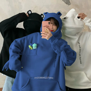 S-3XL Frog Zipper Hoodie Fleece Lined Springtime Embroidery oversized Sweatshirt Harajuku Warm Pullover Korean Style Dropship