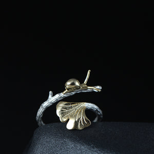 Ginkgo Snail Ring, Lotus Leaf Snail Ring, Wheat Snail Ring |