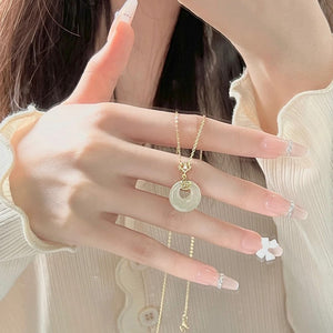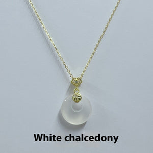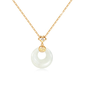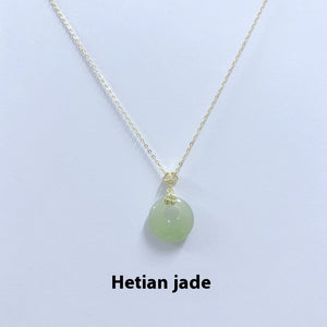 S925 Sterling Silver Fu Character Hetian Jade Peace Buckle Necklace