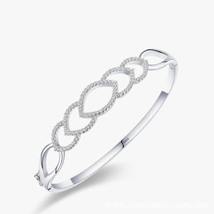 S925 Sterling Silver Women's Chain Hollow Jeweled Bracelet