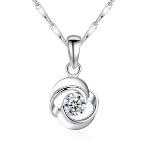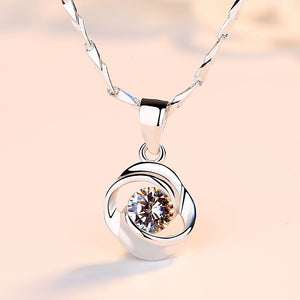 S999 Pure Silver Rose Rotating Love Pendant Necklace Japanese And Korean Simple