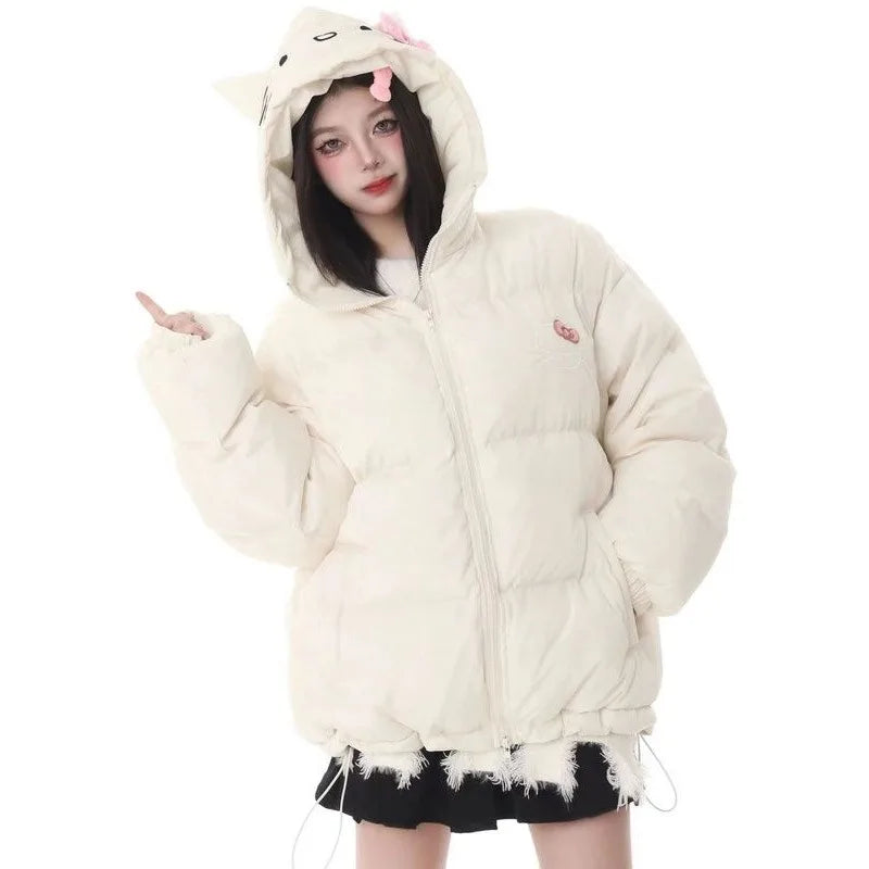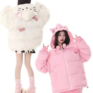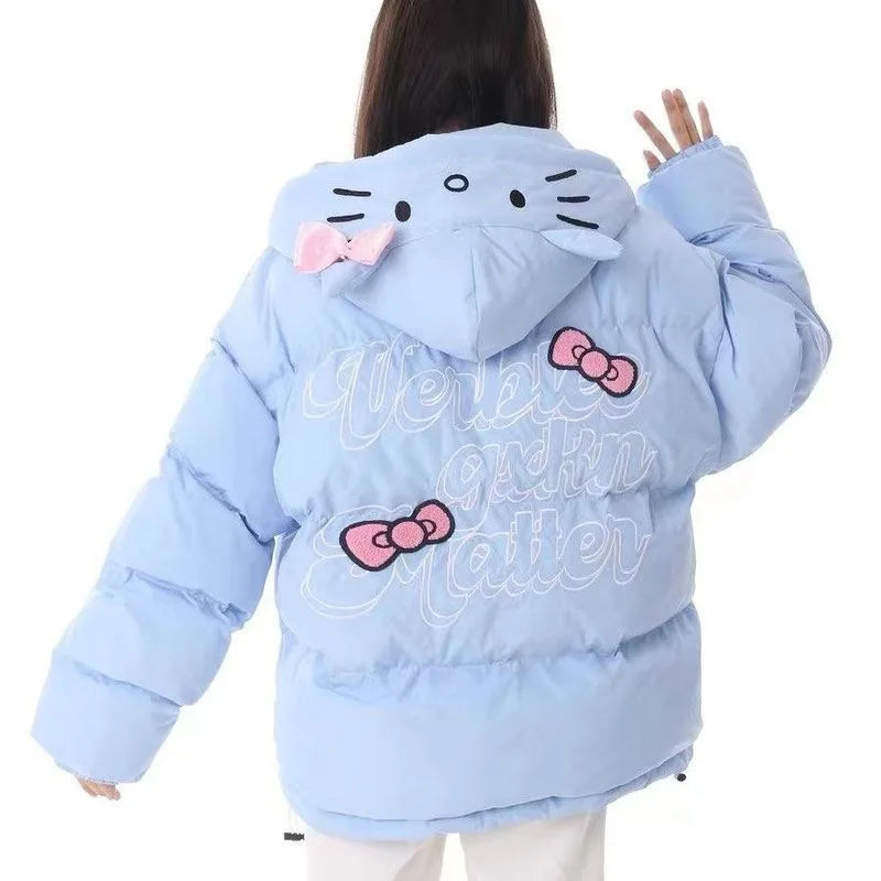 Sanrio kawaii anime Hello Kitty large size winter thickened warm loose coat cute girl heart cotton coat holiday gift wholesale