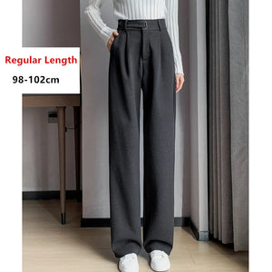 Seoulish Autumn Winter Thicken Woolen Casual Loose Full Length Pants New Button High Waist Chic Wide Leg Trousers Female