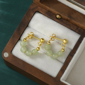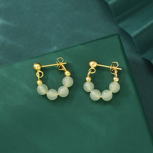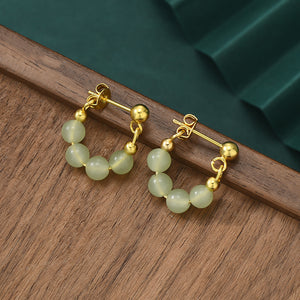 Simple Design Retro Green Beads String Stud Earrings For Women