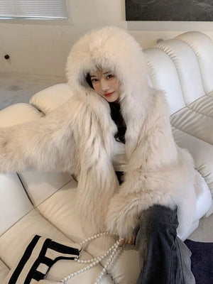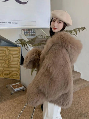 Simulation Fox Fur Double-Sided Woven Fur Coat For Women 2024 Winter New Fashion Thick Dense Warm Hooded False Fur Coat Female