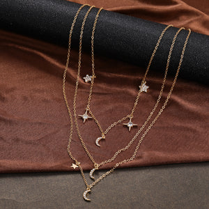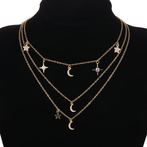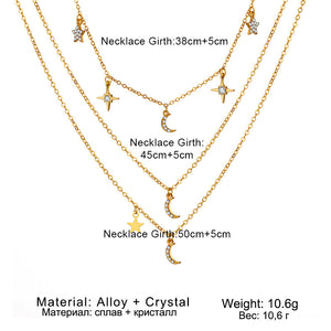 Star Moon Crystal Multi-layer Pendant Necklace