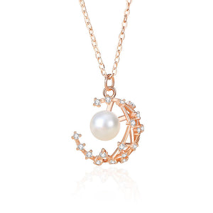 Sterling Silver 925 Korean Style Starry Sky Moon Necklace Elegant Ins Style
